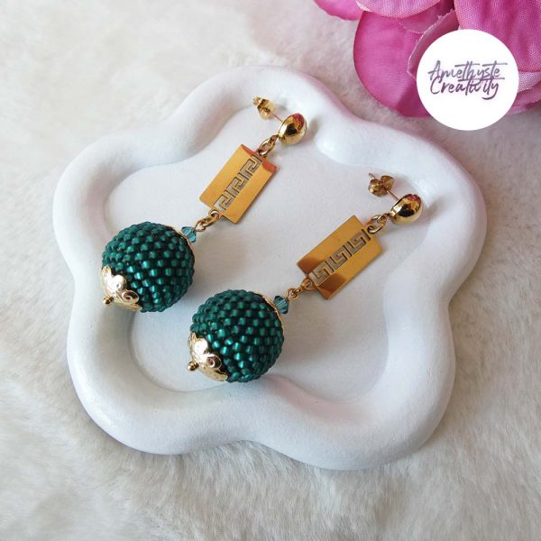 ENSEMBLE – Collier & Boucles D’oreilles Fait Main Crochetées Boules De 17 Mm En Perles “Miyuki” – Emeuraude