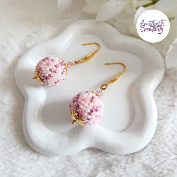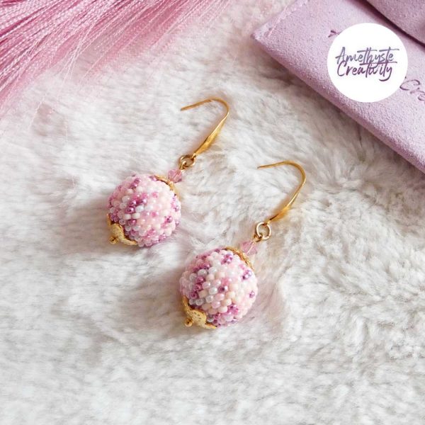 ENSEMBLE – SALDINA || Pendentif + Boucles d’oreilles Faits Main Crocheté Boule De 20 Mm En Perles “Miyuki” – Rose Antique