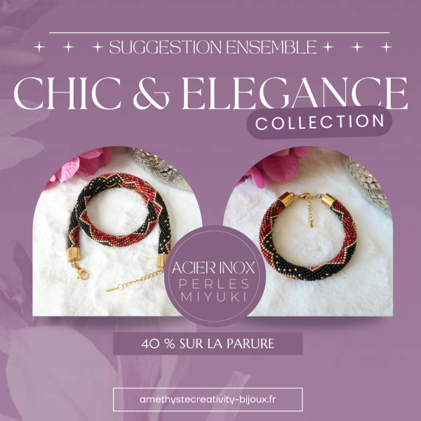 ENSEMBLE – CHIC & ELEGANCE || Collier & Bracelet Crocheté Acier Inoxydable en Spirales avec Perles “Miyuki”