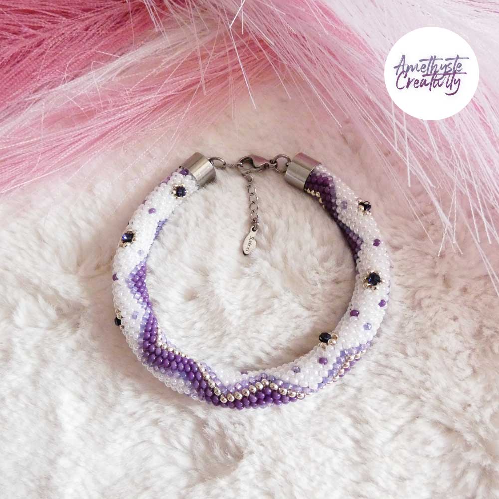 Je vous présente des Boucles d’oreilles en forme de boules réalisées au crochet avec des perles japonaise “Miyukis” de 11/0 (2mm) et des Meshs Swaroskis qui sont de petits cristaux à coudre. Ces boucles d’oreilles sont réalisées à la main par mes soins ainsi que son schéma (Design by Amethyste Creativity, reproduction interdite).