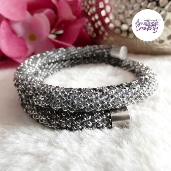 Ce bracelet mémoire sans fermoir est entièrement crocheté à la main avec des perles Miyuki, reconnues pour leur finesse et leur éclat. Léger, souple et confortable, il épouse naturellement la forme du poignet sans nécessiter de fermeture, grâce à sa structure en spirale.