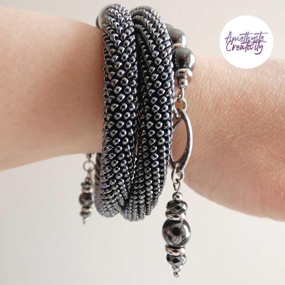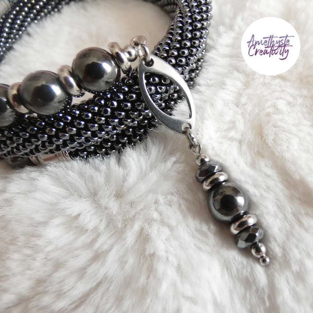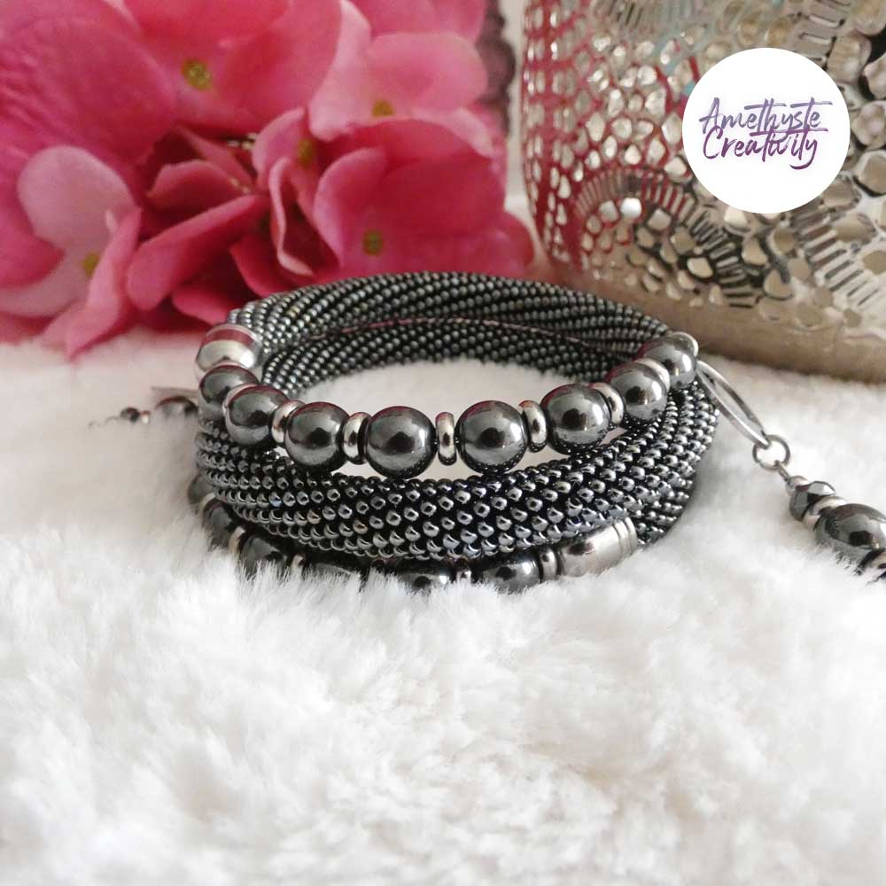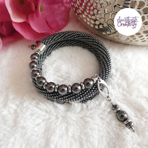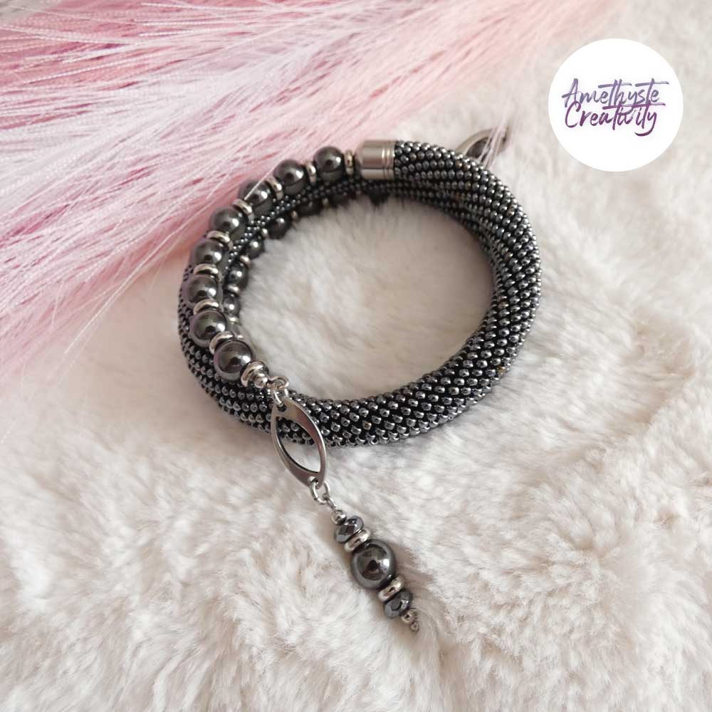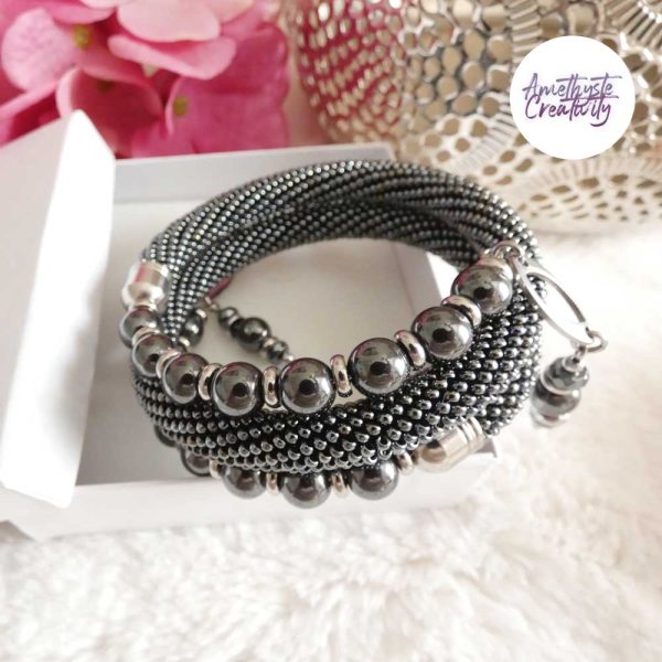 Bracelet Mémoire Sans Fermoir Crocheté Fait Main en Perles « Miyuki » & Perles Hematite