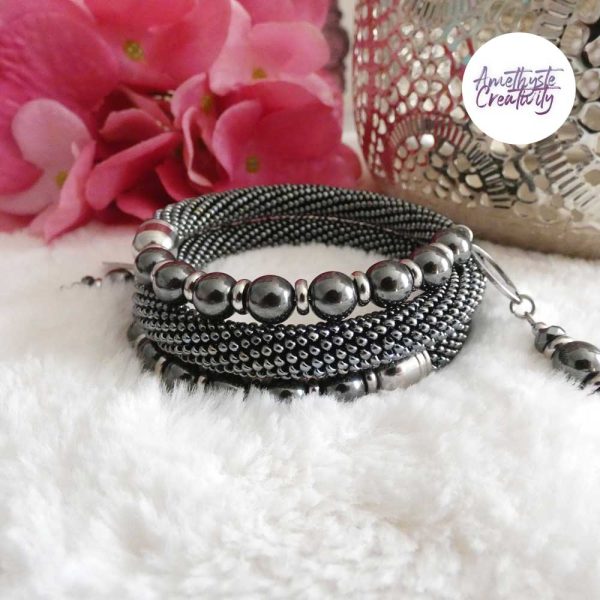 Bracelet mémoire argenté & Hématite – Élégance Intemporelle