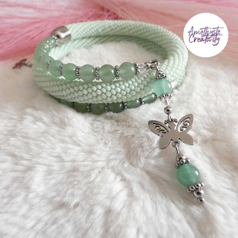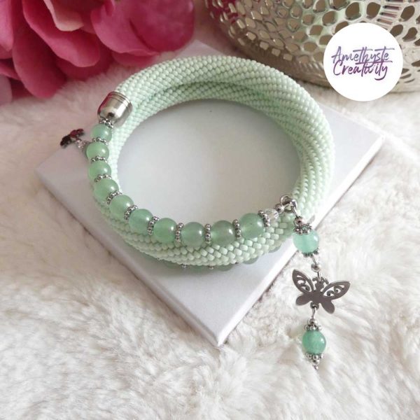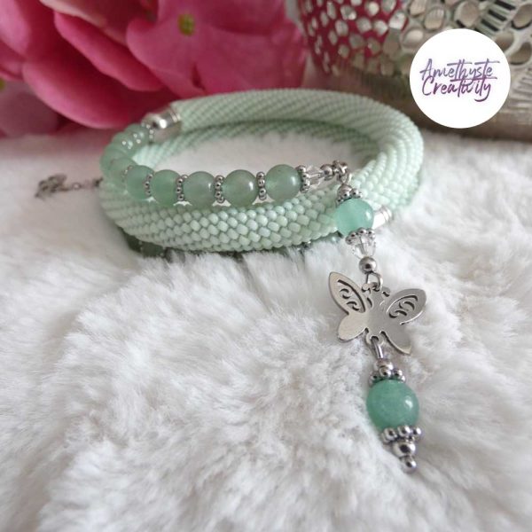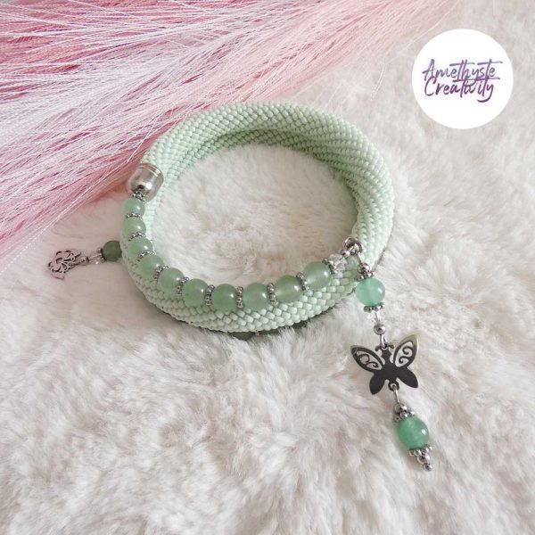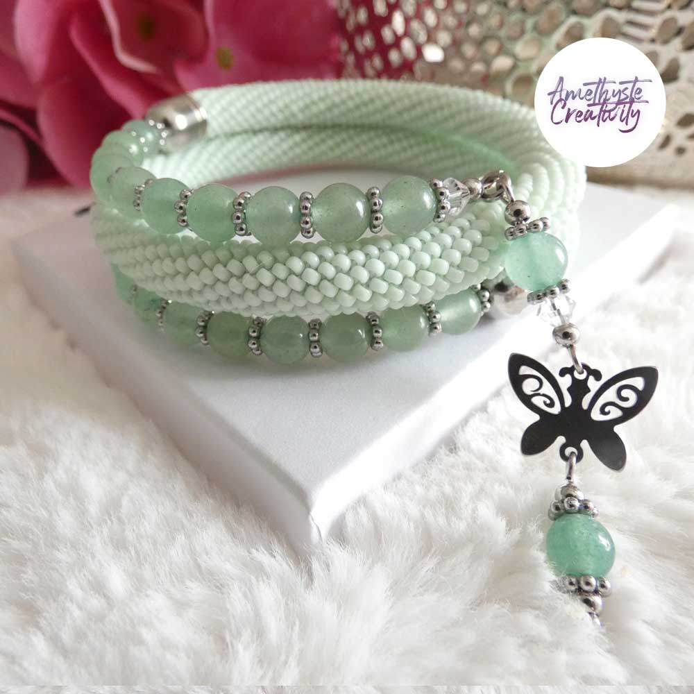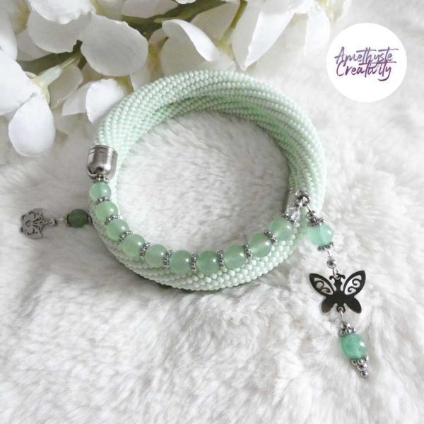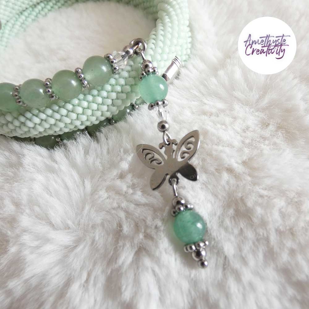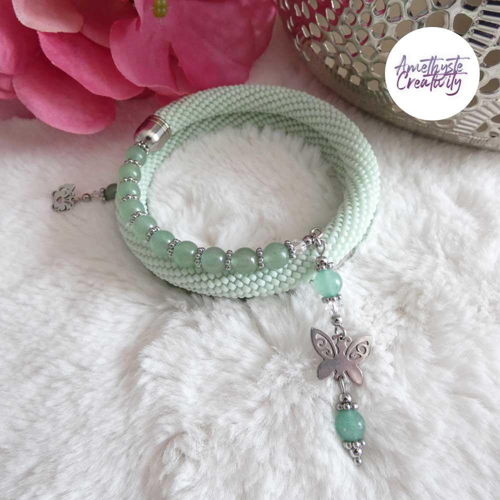 BUTTERFLY || Bracelet Sans Fermoir Crocheté Fait Main En Acier Inoxydable Et Perles “Miyuki” & Aventurine