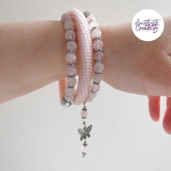 Bracelet Mémoire Butterfly Argenté & Quartz rose – Douceur et Harmonie