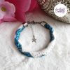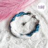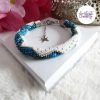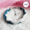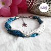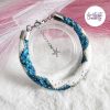 CHIC & ELEGANCE || Bracelet Crocheté Fait Main En Acier Inoxydable Et Perles “Miyuki” – Argenté, Blanc nacré & Bleu