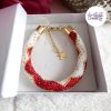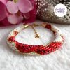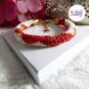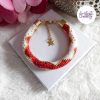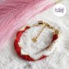 CHIC & ELEGANCE || Bracelet Crocheté Fait Main En Acier Inoxydable Et Perles “Miyuki” – Doré, Blanc nacré & Mix Rouge