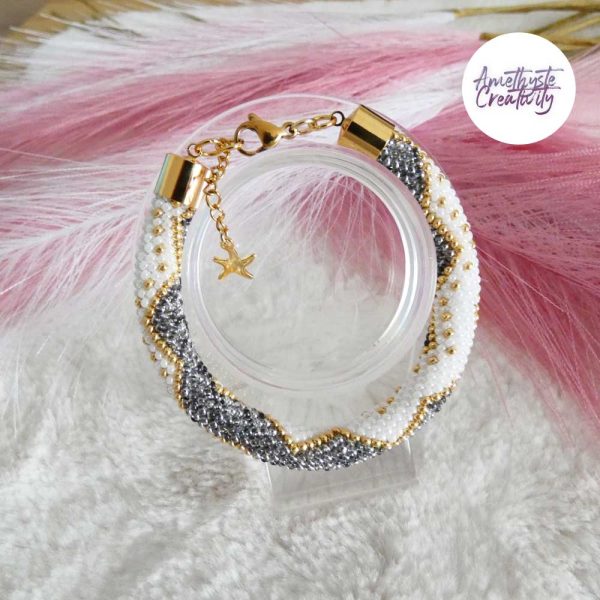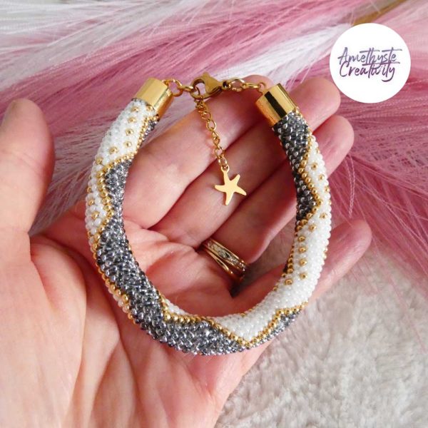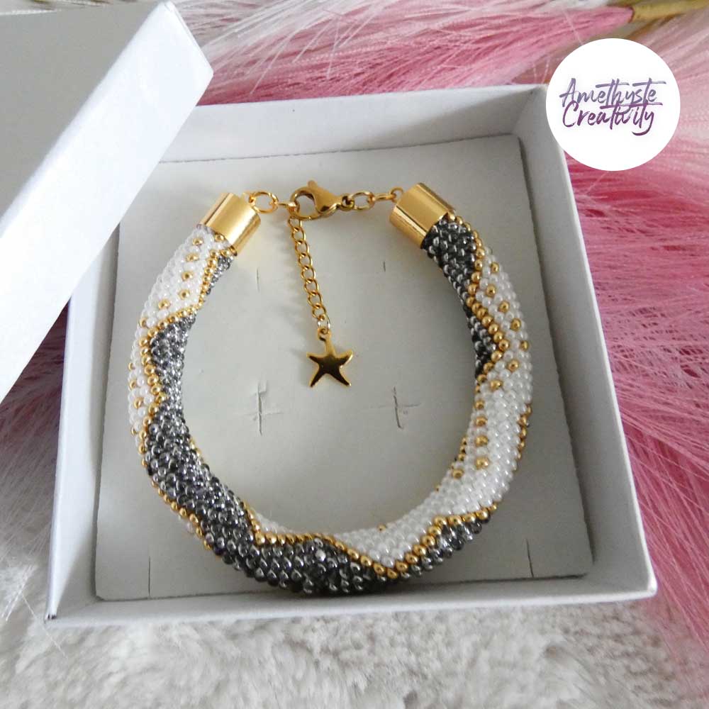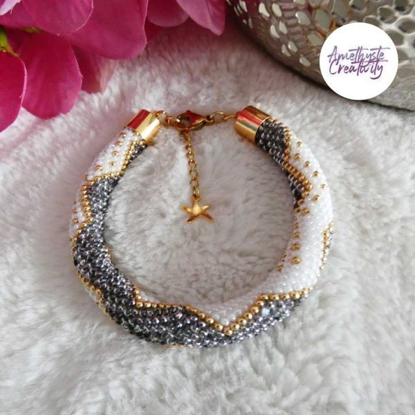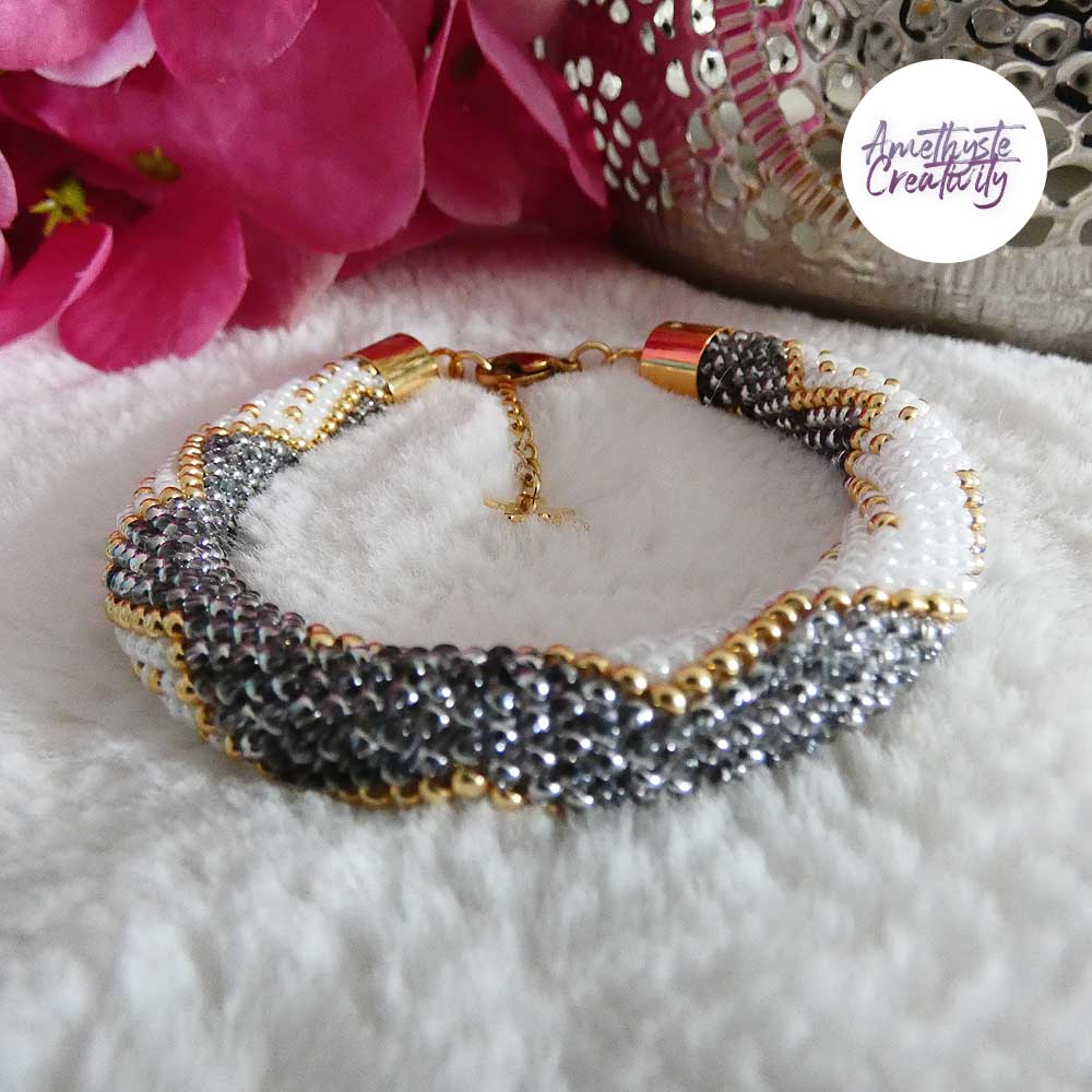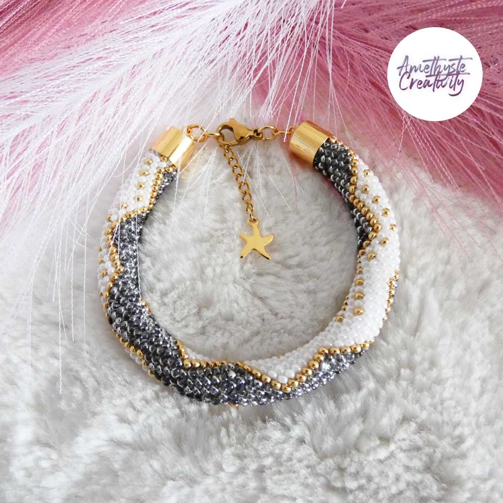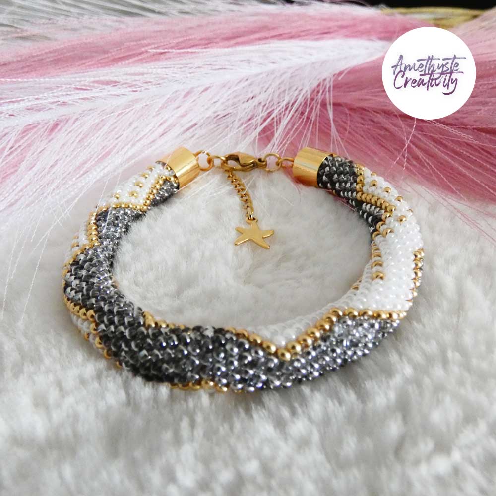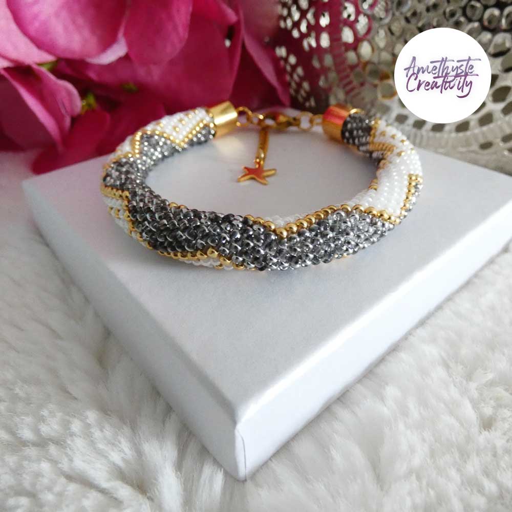 Ce bracelet, à la fois chic et élégant, est parfait pour sublimer vos tenues lors des fêtes. Créé avec soin par mes mains, il est accompagné de son schéma (Design by Amethyste Creativity, reproduction interdite).