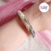 Il s’agit d’un bracelet spirale réalisé au crochet avec des perles japonaises « Miyuki » de taille 11/0 (2 mm). Chaque perle est soigneusement crochetée à la main, ce qui confère au bracelet à la fois solidité et souplesse.