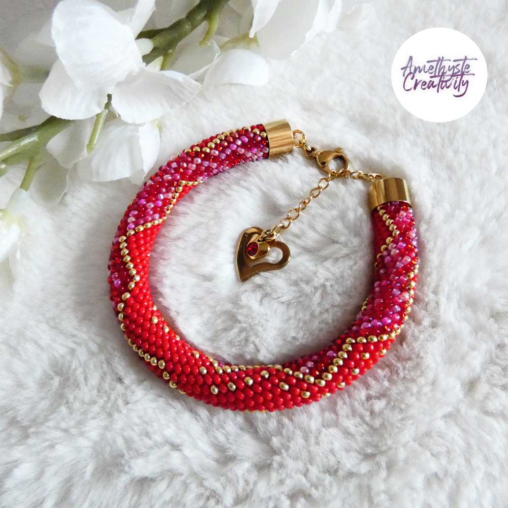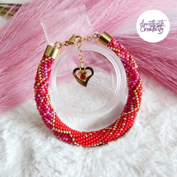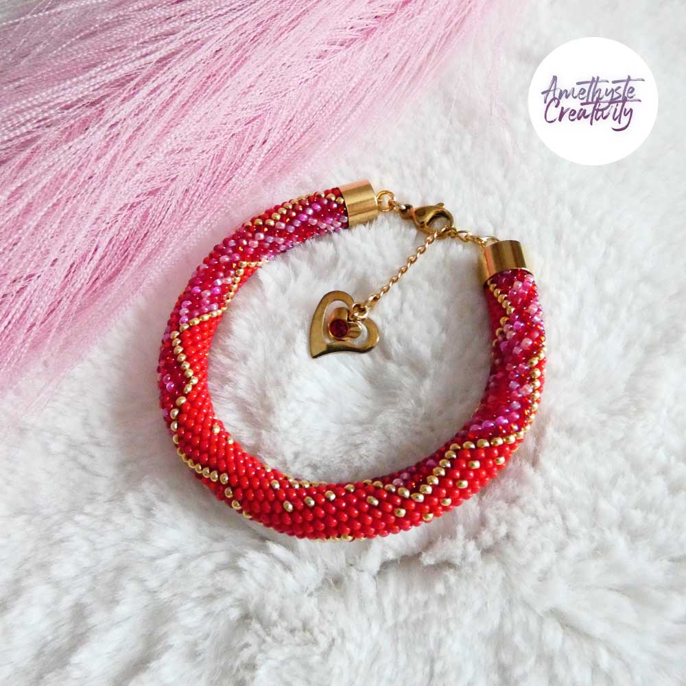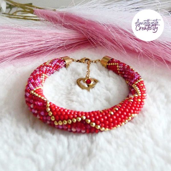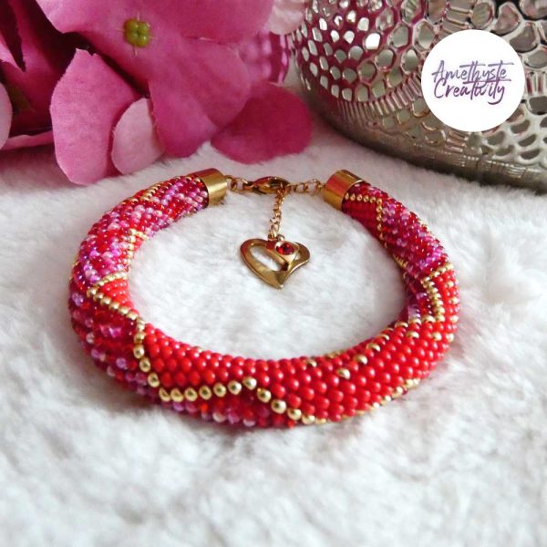 CHIC & ELEGANCE || Bracelet Crocheté Fait Main En Acier Inoxydable Et Perles “Miyuki” – Doré, Rouge & Mix Rouge-Rose