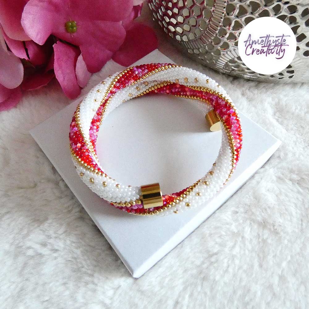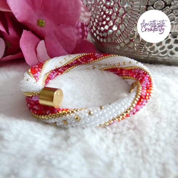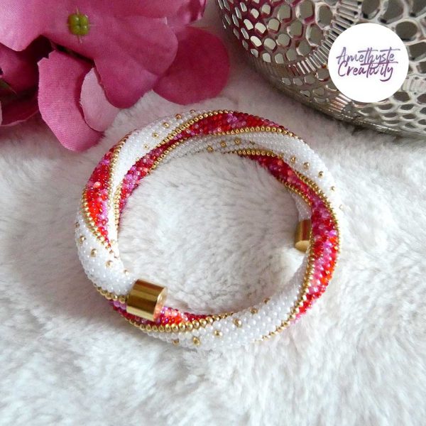 Bracelet mémoire sans fermoir – RBlanc nacré, doré & Rose-Rouge