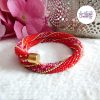 L’association du rouge intense, des nuances rose-rouge lumineuses et des reflets dorés apporte chaleur, élégance et caractère à ce bracelet. Un bijou raffiné qui sublime le poignet avec éclat.