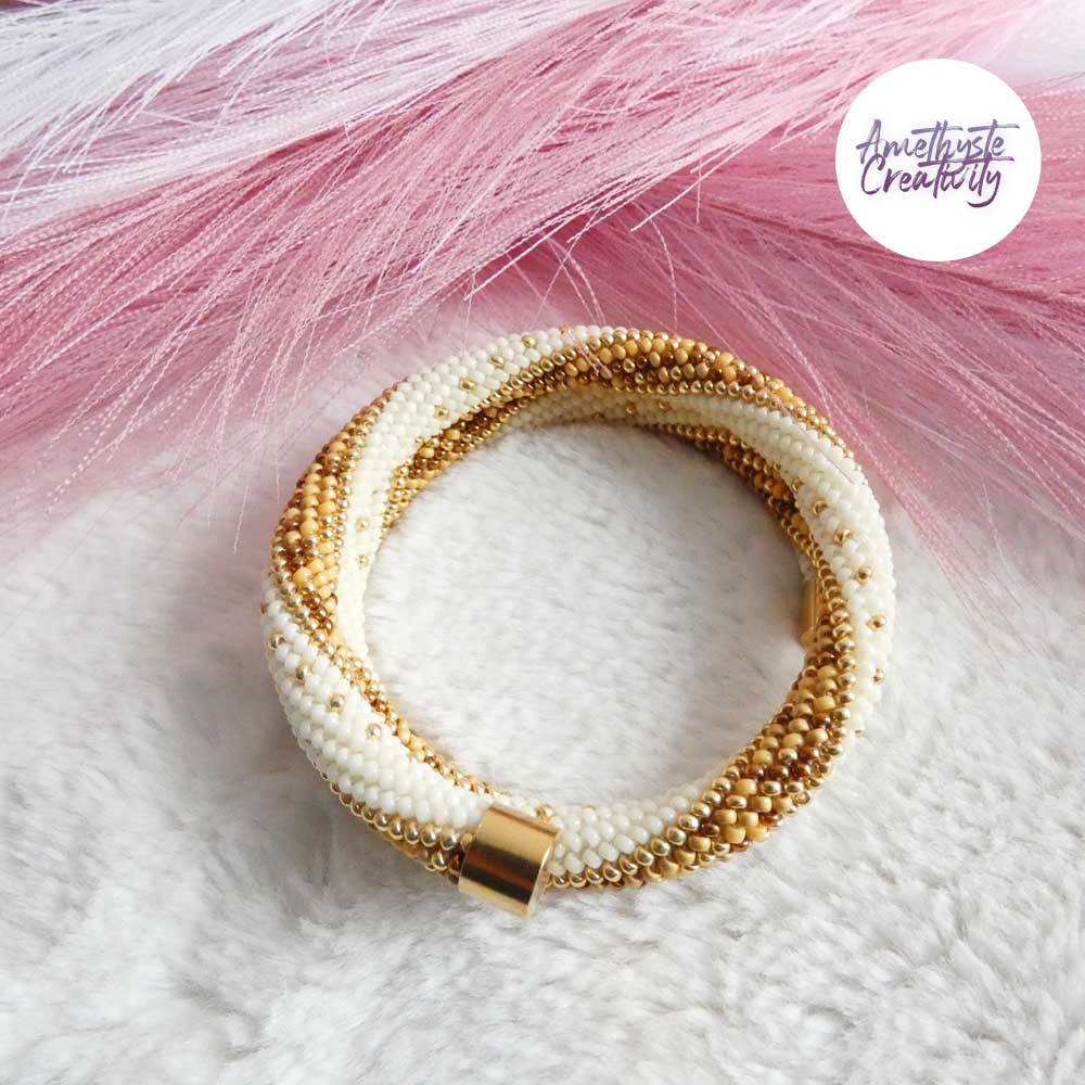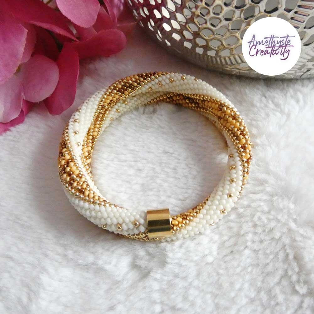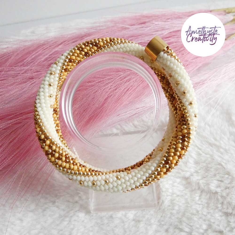MINIMAL CHIC || Bracelet Mémoire Sans Fermoir Crocheté Fait Main en Perles « Miyuki » – Creme & MixGolden sun