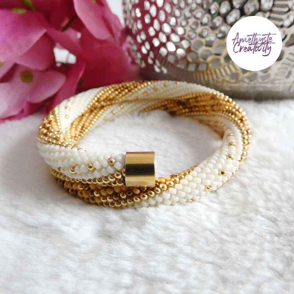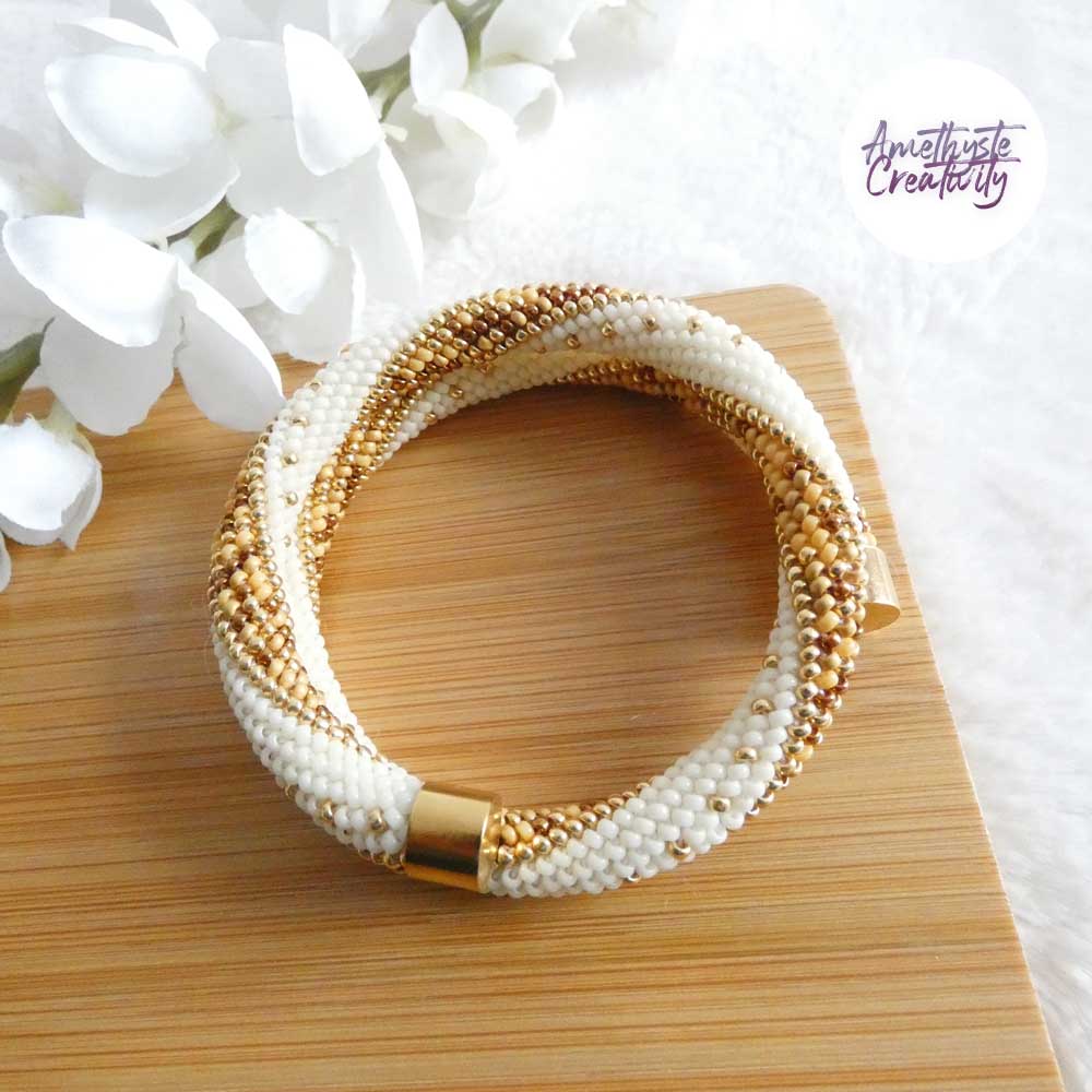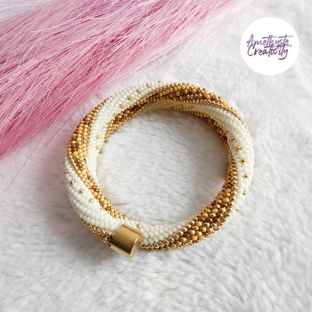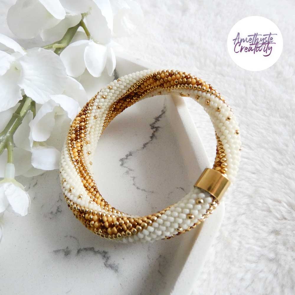 MINIMAL CHIC || Bracelet Mémoire Sans Fermoir Crocheté Fait Main en Perles « Miyuki » – Creme & MixGolden sun