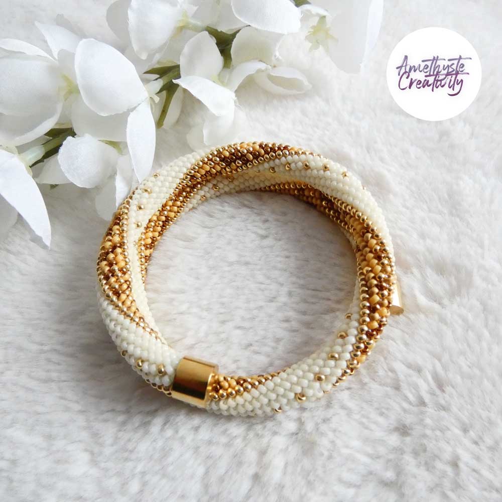 | Miyukis 11/0 | 4202 – Galvanized Gold Duracoat, 491 – Opaque Ivory, MIX 254 Golden Sun |