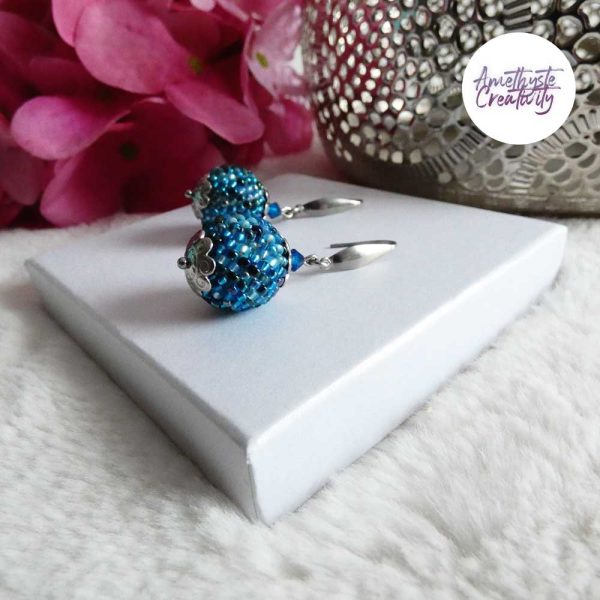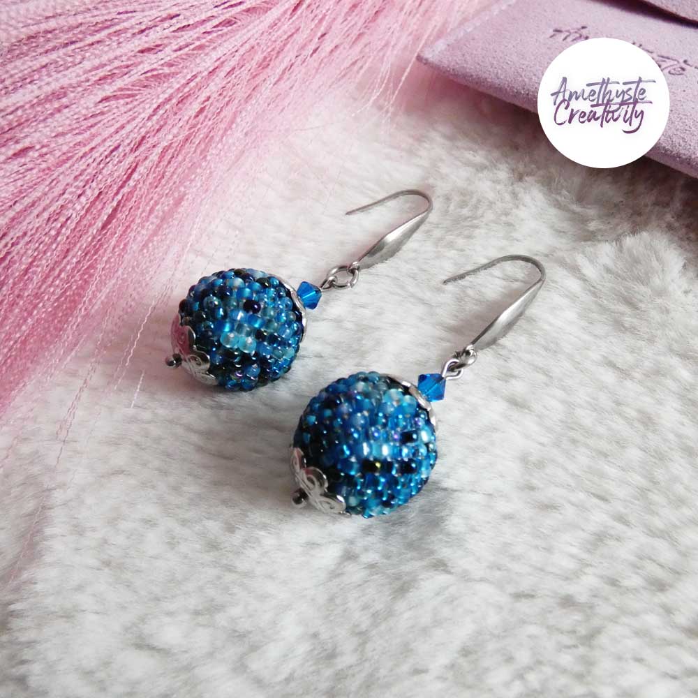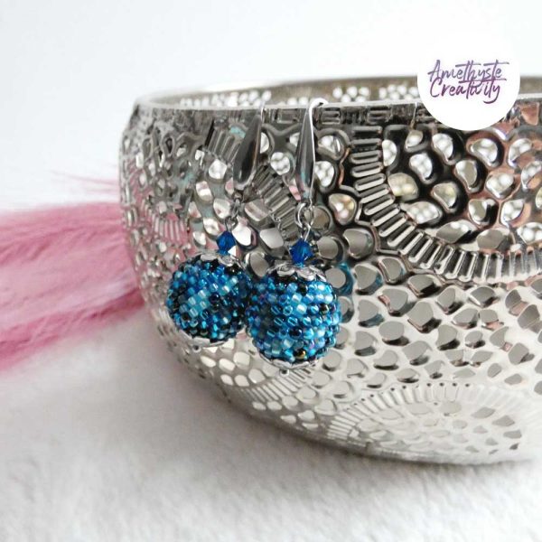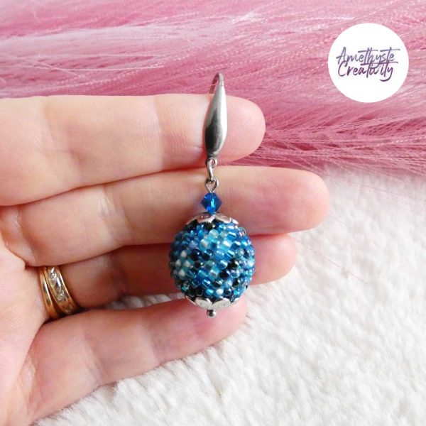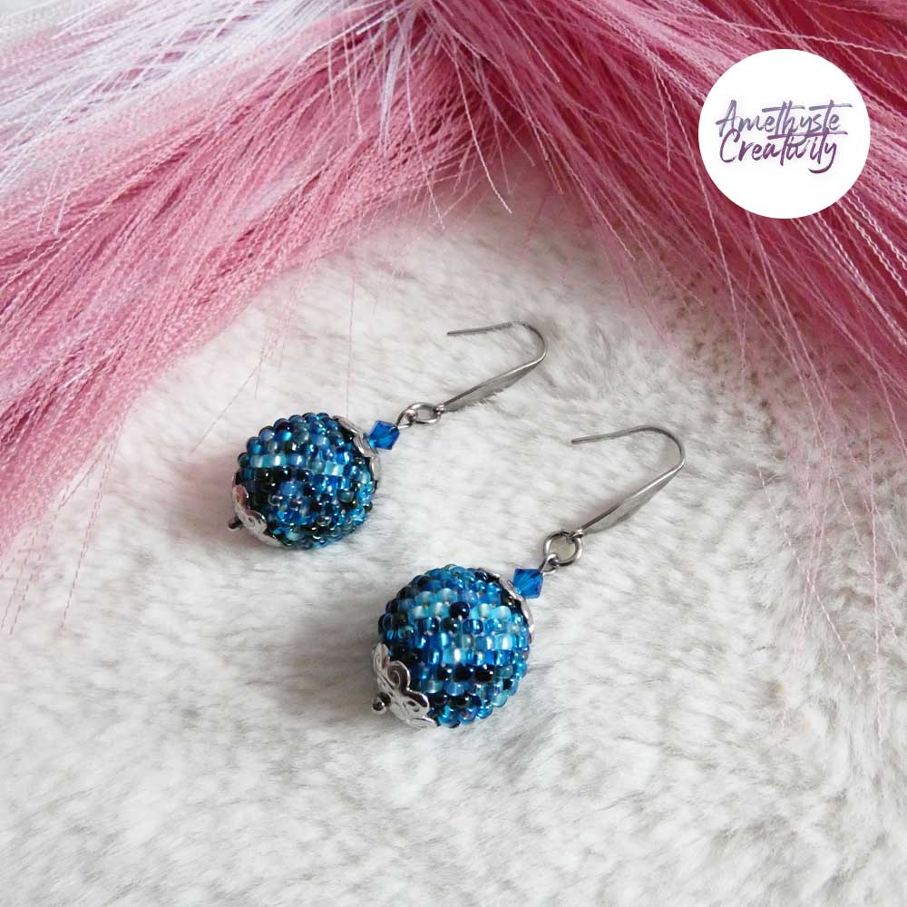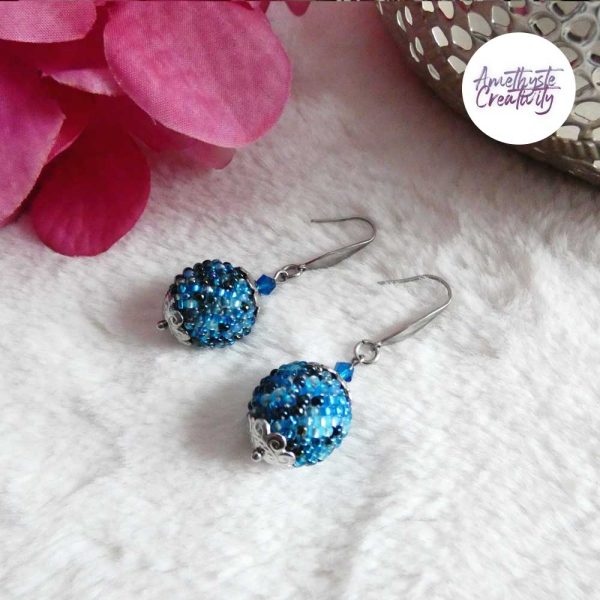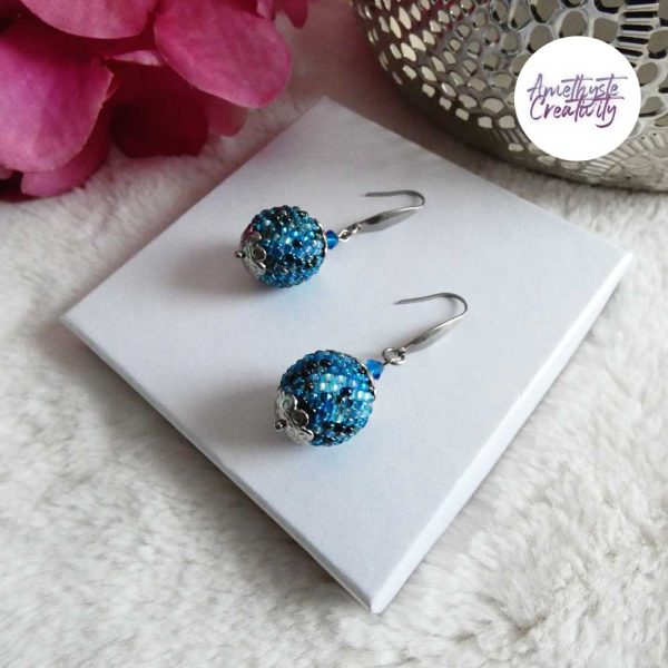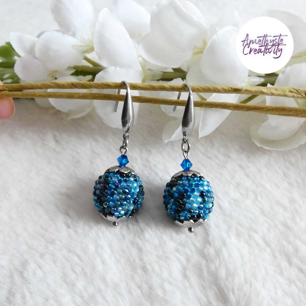 Boucles d’oreilles boule crochetées – Perles Miyuki Bleu Mix