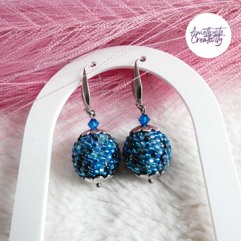 Boucles d’oreilles boule crochetées – Perles Miyuki Orange Mix