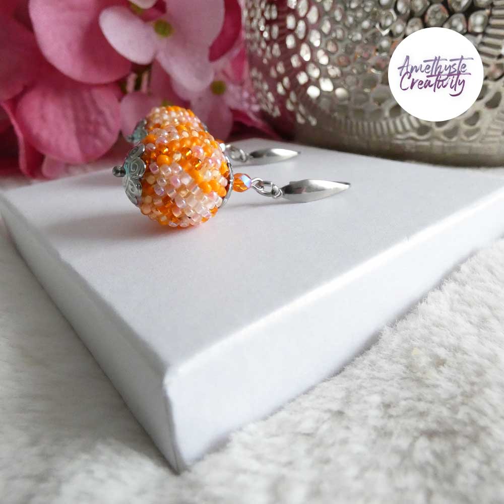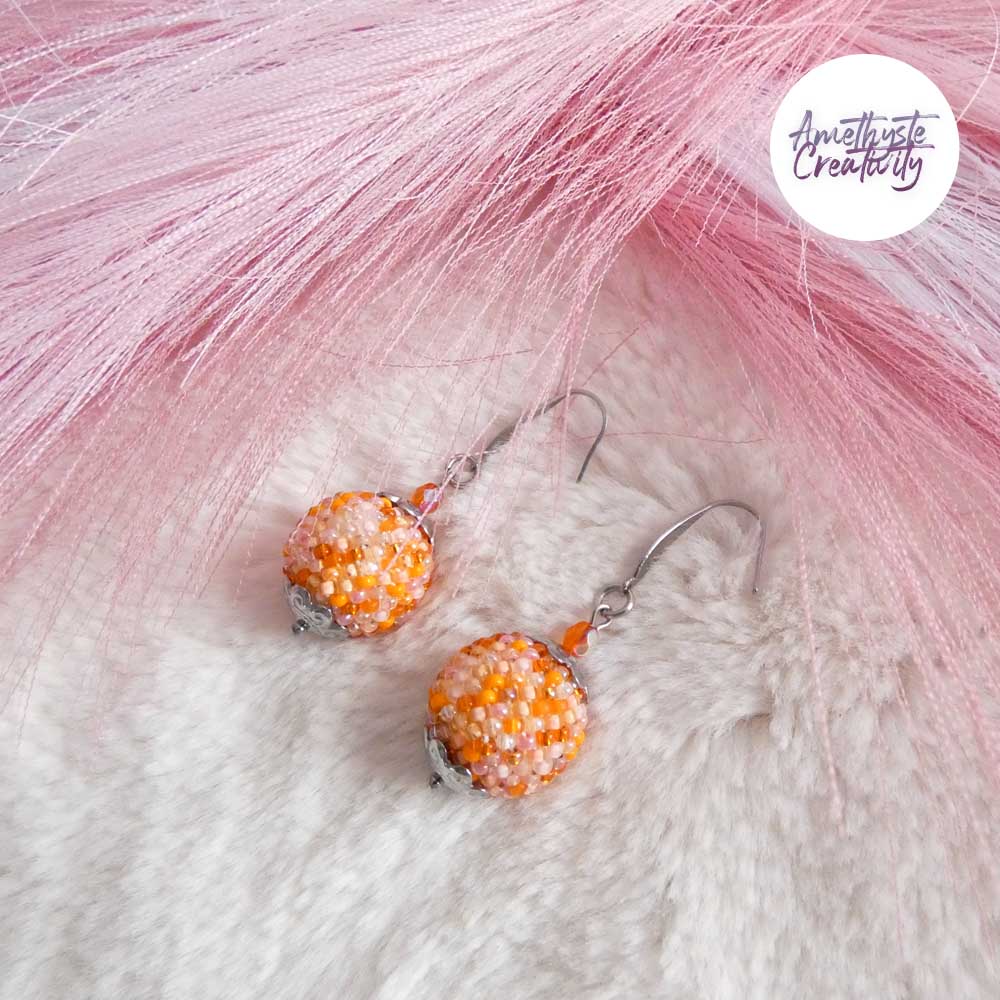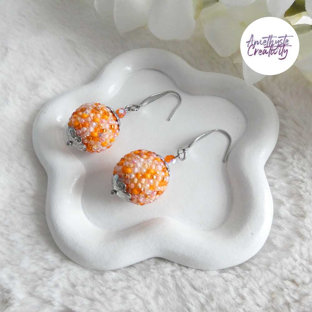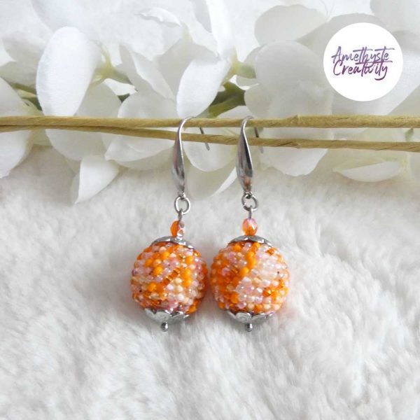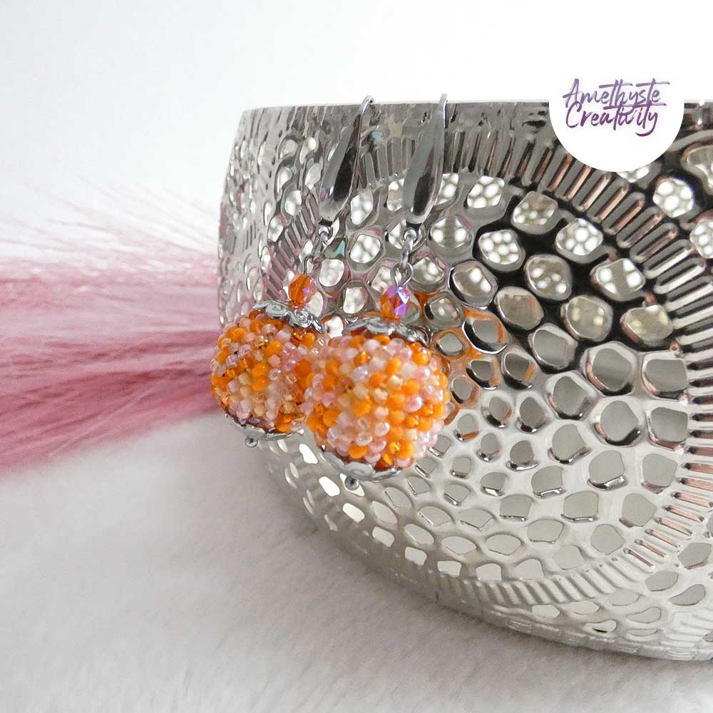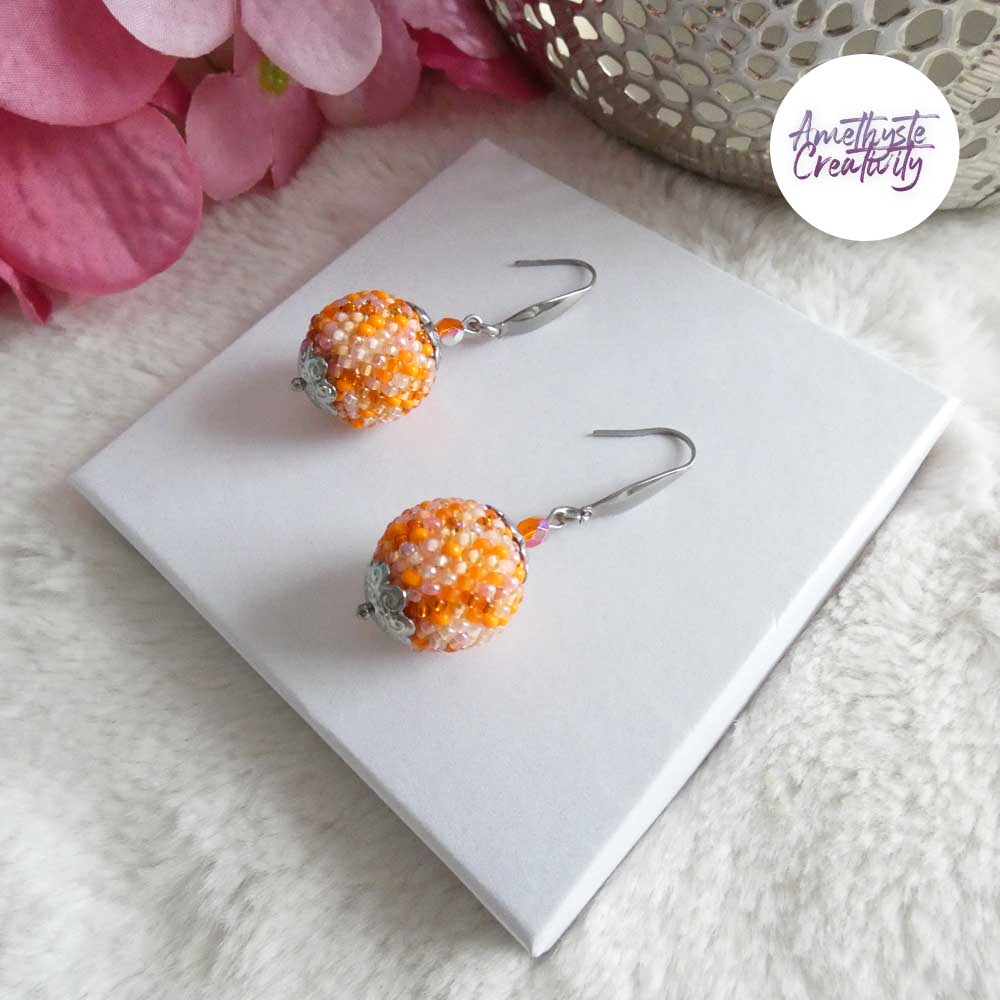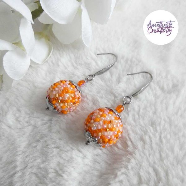Boucles d’oreilles boule crochetées – Perles Miyuki Orange Mix